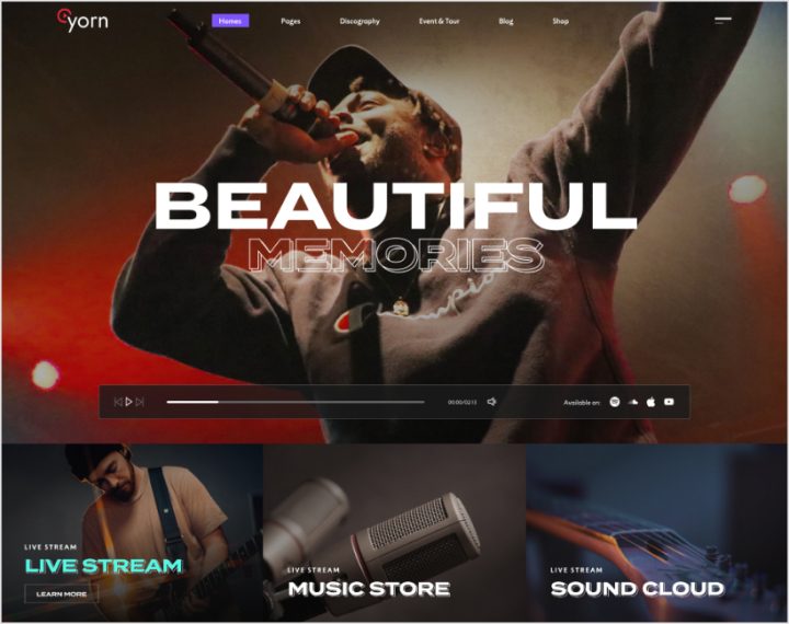 Podcast DemoVideo Tuber Demo Music BandProduct ShowcaseMusic StoreFull Screen ShowMusic BlogMusic Left SidebarMusic Studio